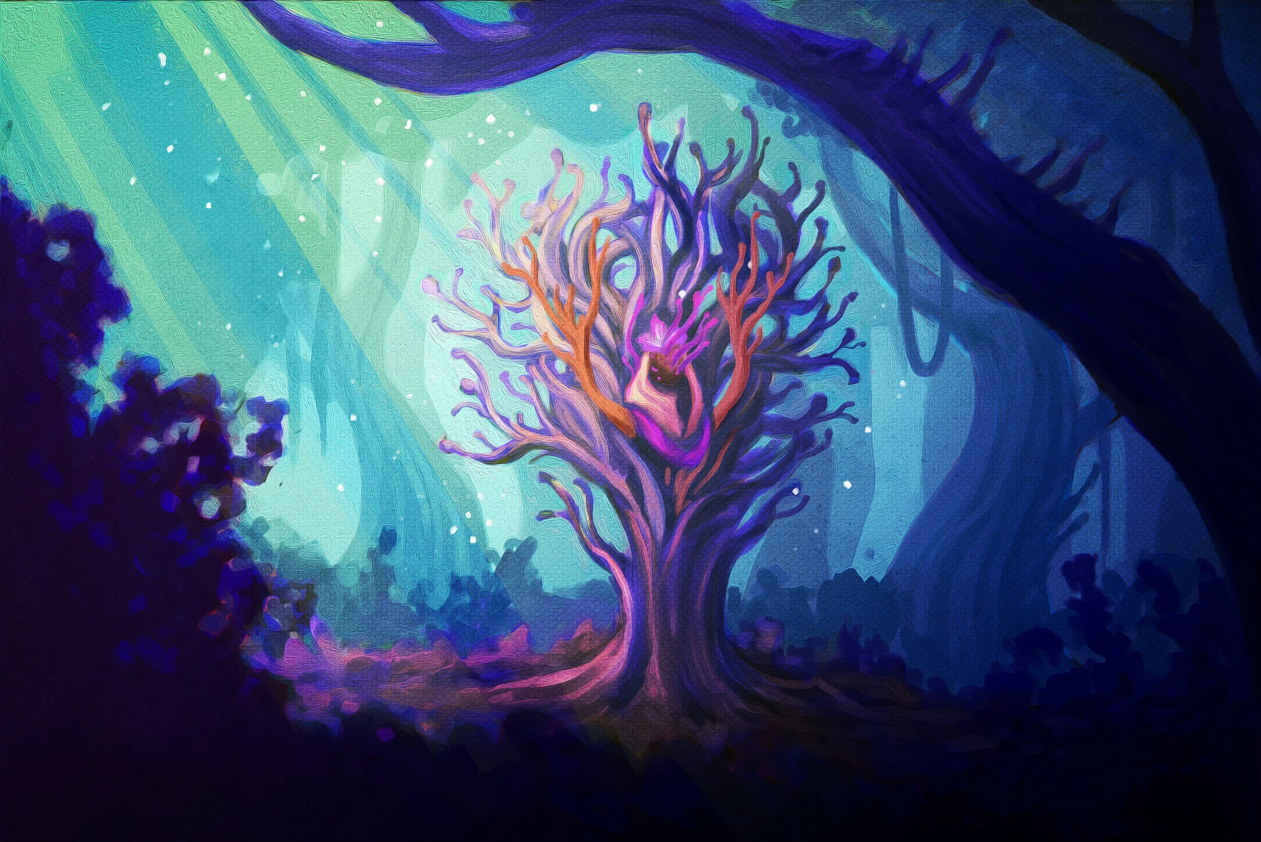 Visual development for a collaborative project about a post-apocalyptic world in which nature reigns, and the protagonist must undertake a journey through the treacherous and alien jungle to find their missing sister.